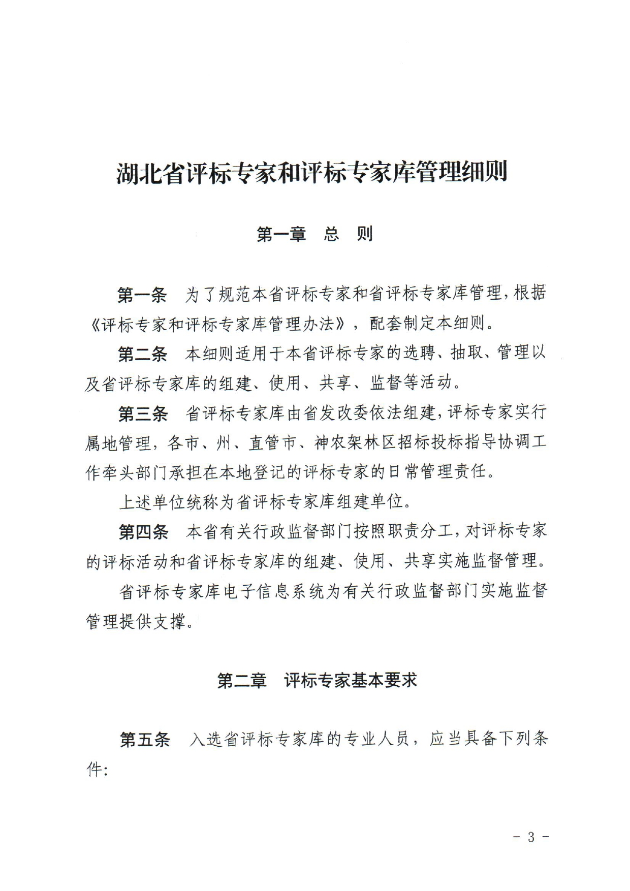 湖北省评标专家和评标专家库管理细则